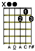 Note: in this chord form, we've seen an 'x' sometimes being used instead of a '-' to indicate to not play the string.