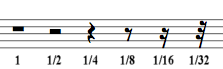 Our happy little oval friends. Some are solid black, others a hollowed out shell of their former selves. Some have sticks up their butts, others have flags. These differences indicate how long the note should last. See the quick reference above.