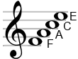 Finally for the notes above the treble clef, below the bass clef, and everything in between simply bang your head repeatedly on the keys a grand piano.